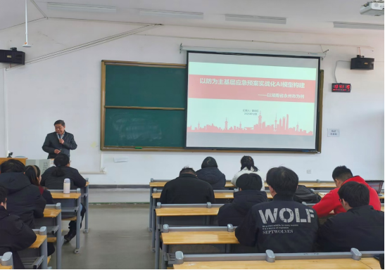 在讲座中,曹忠红副教授结合自身科研经验,围绕横向科研项目的选题、研究方法及实践路径进行了深入分享。他首先向我们讲解了AI模型在金融、医疗、政务等关键场景的深度应用。然后,以湖南省永州市作为切入点,向与会人员讲解永州市基层应急存在的难点、痛点与堵点等问题。接着,讲解AI模型预警系统的构建,随着社会的发展,可能会出现一些安全事故,可以构筑一个多部门合作的AI模型,在事故发生前,及时发现异常数据,统筹治理各项隐患。曹老师介绍了“一网四图”应急指挥与综合防控体系建设情况,并着重阐释了AI应用于自然灾害与事故灾难防范与应对的具体措施。永州市“一网四图”是“纸上预案”到“实战利器”的有效成果,是“数智赋能”筑牢安全底线的有效途径,值得其他地区借鉴、复制、使用。